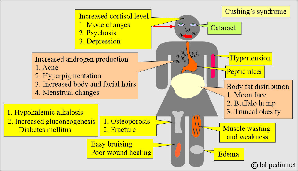 - Basically, this condition is due to excessive body levels of glucocorticoids like cortisol, and this may be: