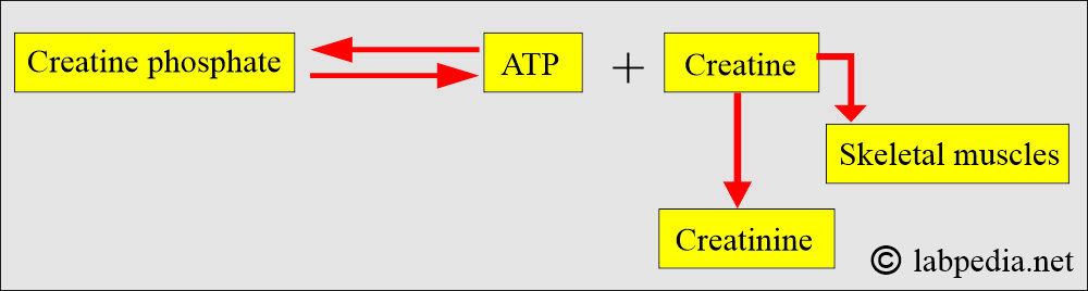 - The above reaction is not reversible, and the creatinine is excreted in the urine.