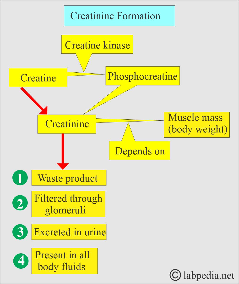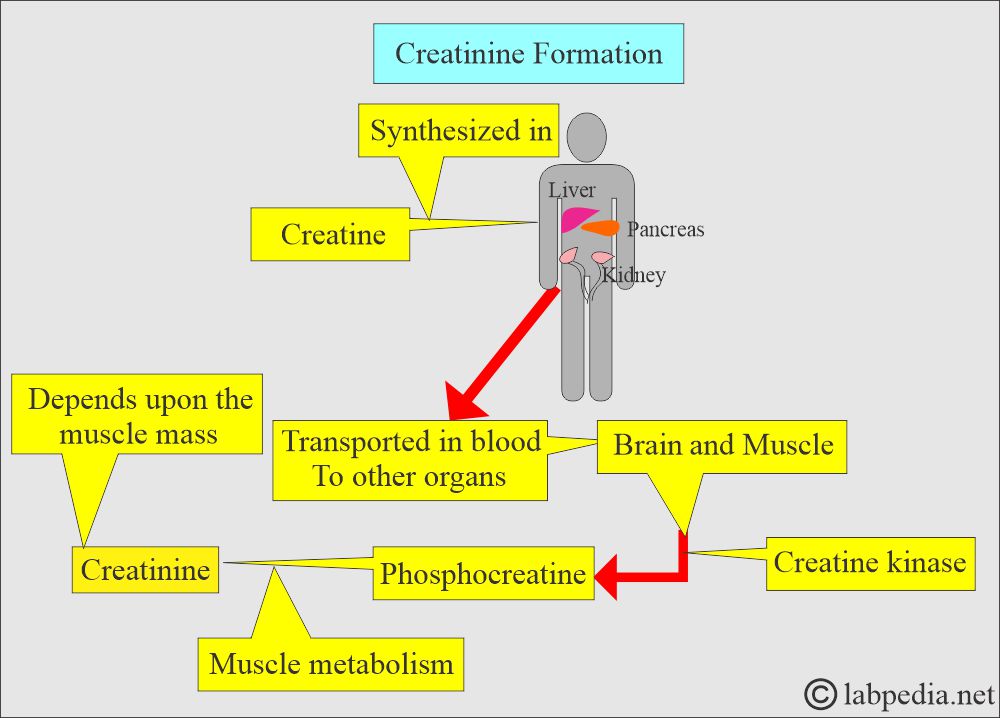 - Creatinine is produced by muscle metabolism. It depends upon the body’s muscle mass; the greater the muscle mass, the higher the creatinine in serum and urine.
