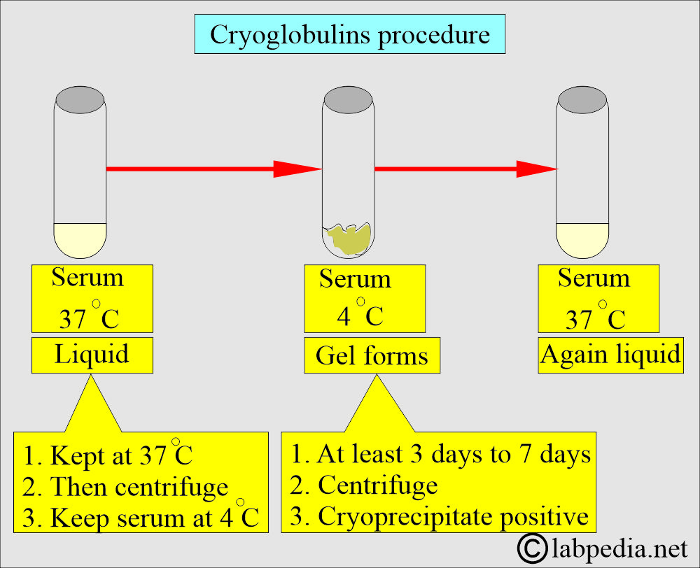 - Rewarm the sample if it dissolves, then it confirms the cryoglobulins.