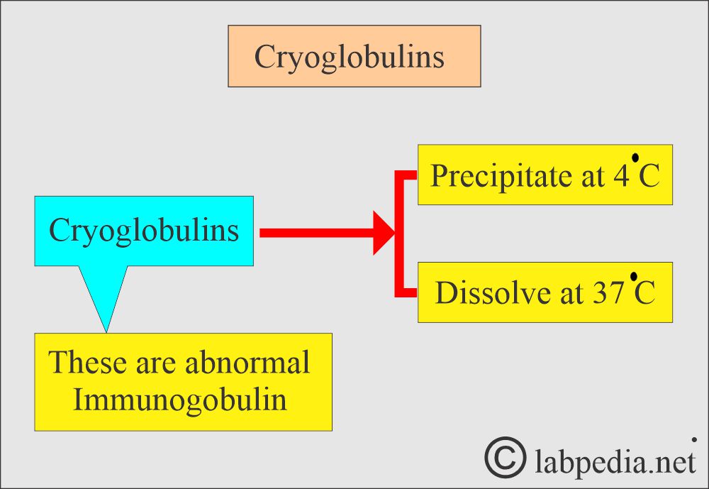 - Cryoglobulins are abnormal immunoglobulin proteins produced due to various diseases.