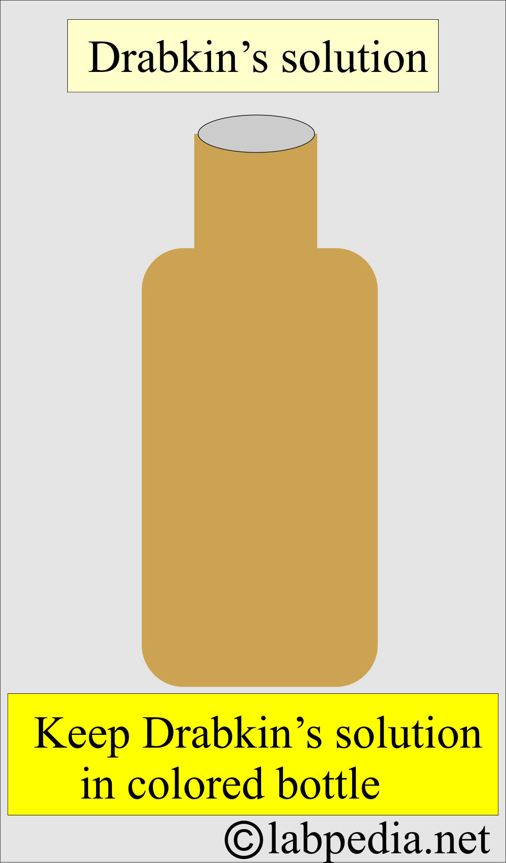 - Drabkin’s solution is a pale yellow, clear fluid; it should not be used when it is cloudy.