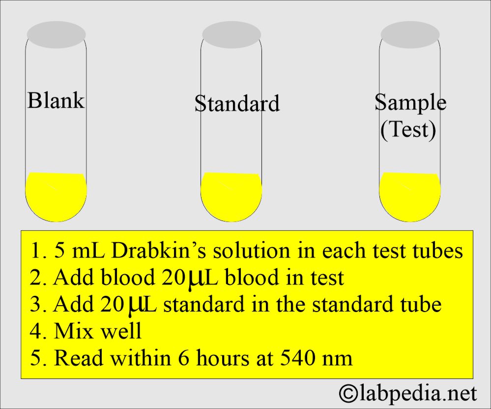 You shows the principle of drabkin solution but not show how we are apply this solution