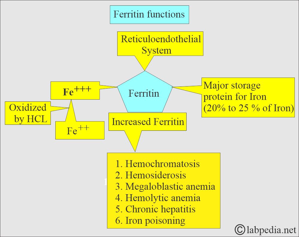 - When Ferritin is combined with serum iron levels and total iron-binding capacity (TIBC), it helps differentiate types of anemia.