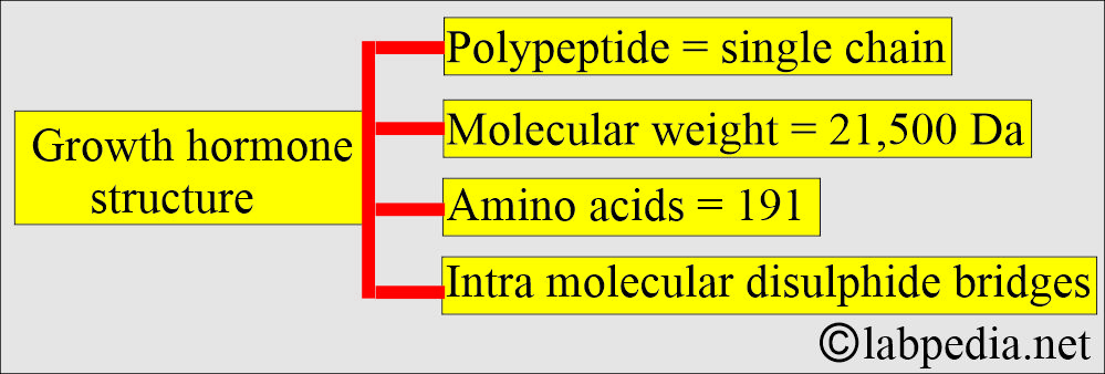 - The growth hormone is a single-chain polypeptide with a molecular weight of 21,500 Da (22 kDa) and 191 amino acids.