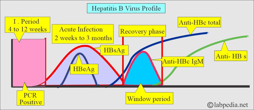 - After the HBs antigen disappears, anti-HBs antibodies may take several weeks to months to appear in the blood circulation, and this is called the window period (2 to 6 weeks), during which only anti-HBc-IgM is present in the circulation.