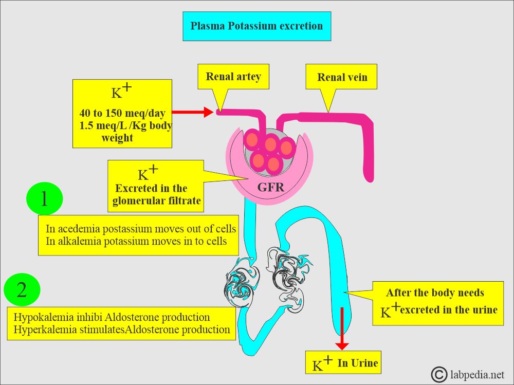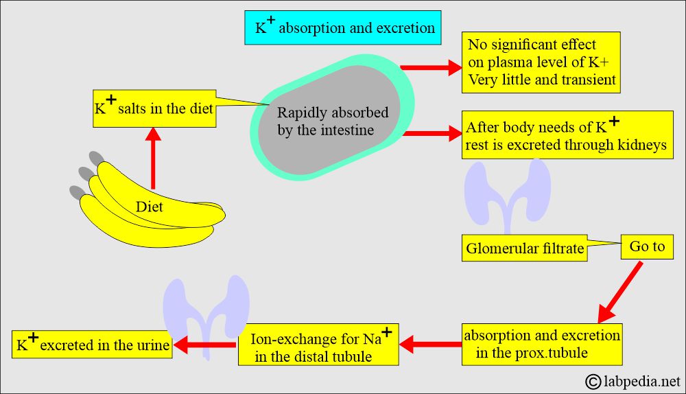 - After the body needs potassium, it is excreted through the kidneys.